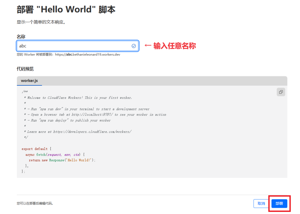 输入任意名称后选择部署