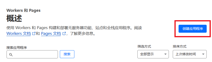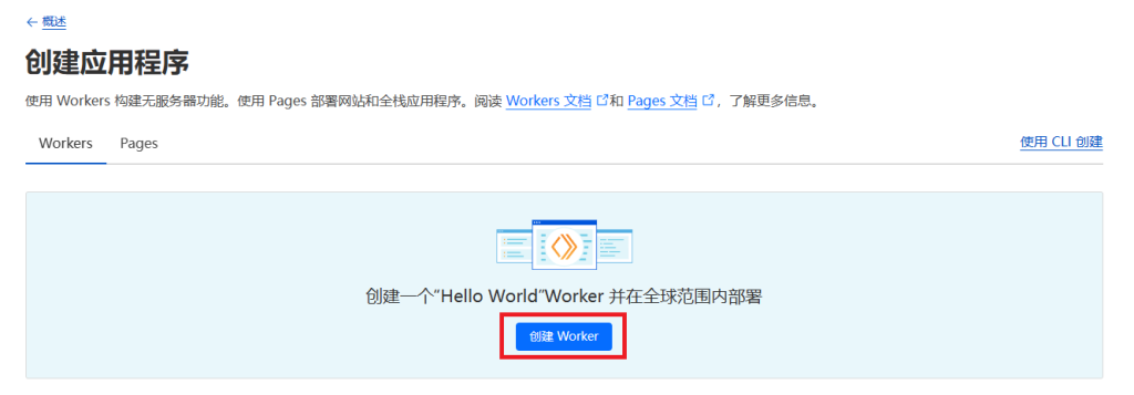 前往cloudflare,找到cf worker页面,选择创建应用程序