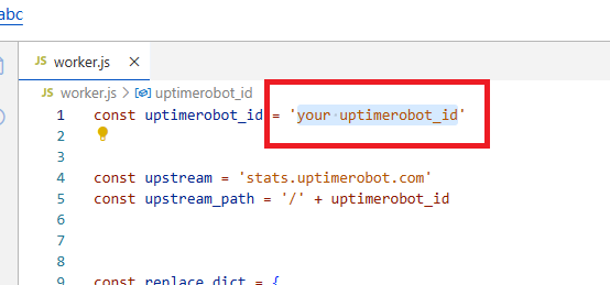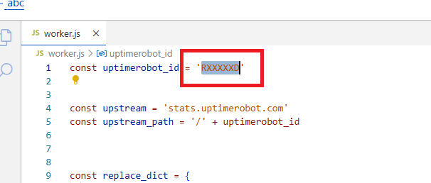 清空里面的所有内容,然后复制刚刚在alist里保存的代码,找到第一行的 uptimerobot_id