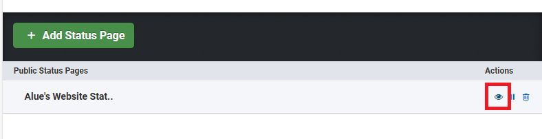 前往 Status Page | UptimeRobot 页面,在你的页面下找到一个小眼睛,并点击