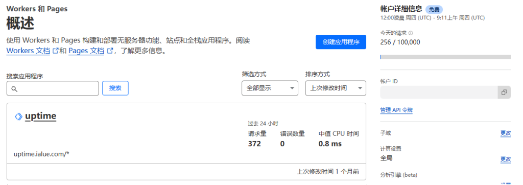 cf家大业大,给的十万次绰绰有余,我现在上面跑了5个worker和1个page,每天调用才三万多一点,如果单是这个反代uptime,每天撑死也才400次,所以完全不需要担心超量